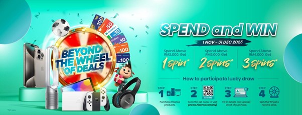 Those who purchased Hisense products during the campaign are eligible to participate in the ‘Beyond The Wheel of Deals’ Lucky Draw and win incredible prizes. Win fantastic prizes such as an iPhone 15 Pro Max, a Nintendo Switch OLED, Bose Quiet Comfort 45 Headphones, a Dyson Purifier Cool Air Purifier, and digital vouchers from well-known businesses such as Family Mart, Tealive, Lazada, Shopee, and others.