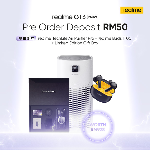 | Premium Combo (with a deposit of RM50) | realme Buds T100 Earbuds, realme TechLife Air Purifier Pro (worth RM928) |