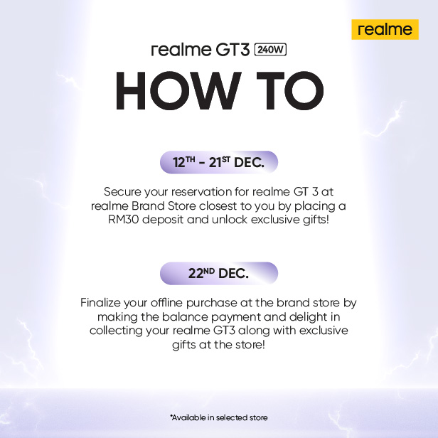 From today until December 21, 2023, Malaysians interested in purchasing a realme GT3 240W can do so at their nearest realme Brand Store. Those who pre-order the realme GT3 240W will be able to pick up their smartphones and other items starting on December 22, 2023.