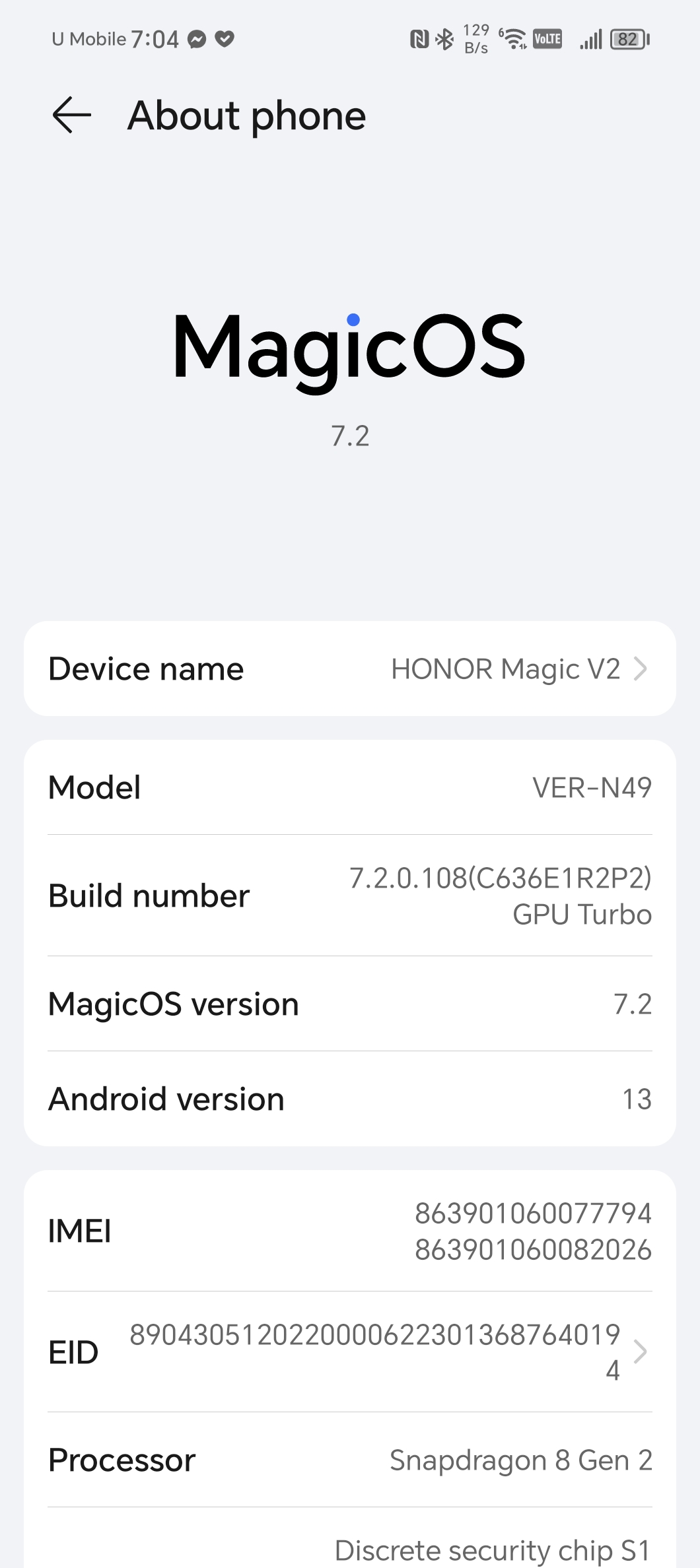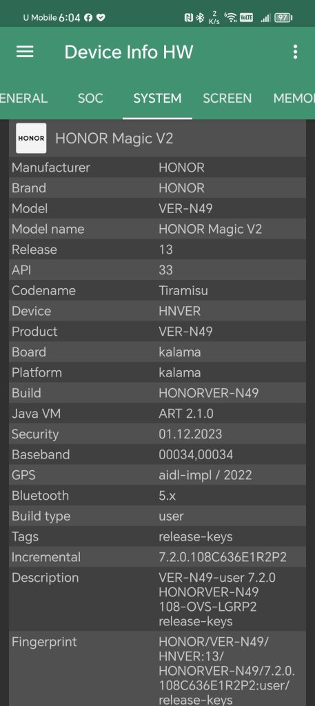 | Operating System | Android 13 + MagicOS 7.2 w/ GMS |