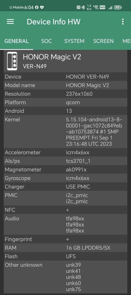 The HONOR Magic V2 does contain stereo speakers on the left and right sides of the phone, which can produce rather decent stereo effects with comparable audio delivery, including DTS:X Ultra Sound effects and a customizable audio profile selected based on the user’s preferences. Despite being a thinner phone, the experience with it remains positive, and the quality is remarkable. You can still connect to your favorite headphones by USB C or just use Bluetooth.