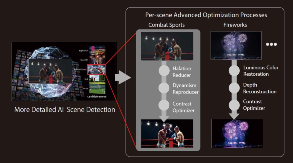 - Dynamic optimization of peak luminance and color mapping for detected scenes, ensuring vibrant visuals and natural tones.