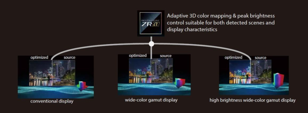 - Introduction of newly developed REGZA Immersive Sound for an authentic 5.1.2 channel surround experience using the TV’s built-in speakers.
