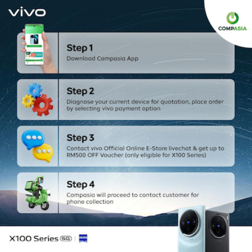 - Up to RM500 Off: Users can save up to RM500 by trading in any eligible device through the CompAsia App, making the latest vivo X100 Series more affordable for customers.