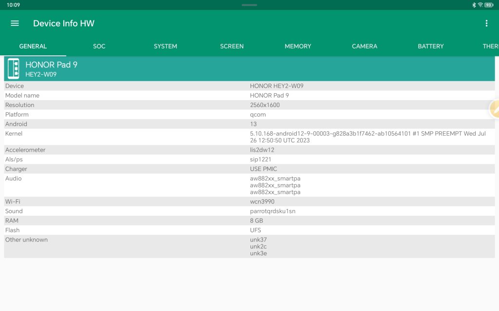 In terms of hardware, the HONOR Pad 9 runs on the Qualcomm Snapdragon 6 Gen 1 processor, featuring 256GB UFS internal storage and 8GB of LPDDR4 RAM. This combination gives the HONOR Pad 9 a strong balance of performance and power efficiency, making it a reliable mid-range tablet. This is clearly demonstrated on the HONOR X9b smartphone that we also reviewed. This tablet is capable of meeting the demands of multitasking, creative software, and some gaming thanks to the Adreno 710 GPU. The ample responsiveness will be provided by the 120Hz screen. In terms of audio, there are 8 speakers in total that are adjusted by HONOR Histen and can be pre-selected based on user preferences.