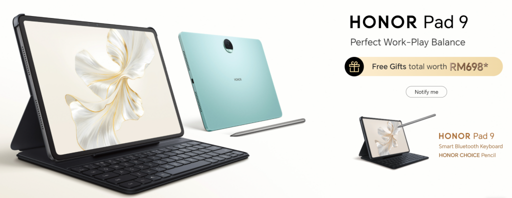 For more information on the HONOR Pad 9, CLICK HERE to find out. Pre-order the HONOR Pad 9 now, retailing at RM1499 to get a free HONOR Bluetooth Keyboard cover and HONOR Choice Pencil worth RM698.