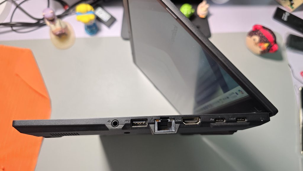 As I mentioned, it is indeed a no frills laptop, the first look at it, it features a all in totally catered in business design, and the color is in all star black which I think it’s the most ideal and safest color choices. The two usual features that it has is the 180 degree lay flat on the screen which makes it easy for screen sharing between parties and US MIL-STD 810H military-grade standard that undergoes extensive and stringent in-house testing, offering the assurance of exceptional protection.