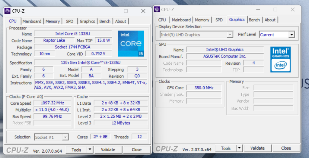 | Processor | Intel® Core™ i5-1335U Processor 1.3GHz (12M Cache, up to 4.6GHz, 10 cores) |