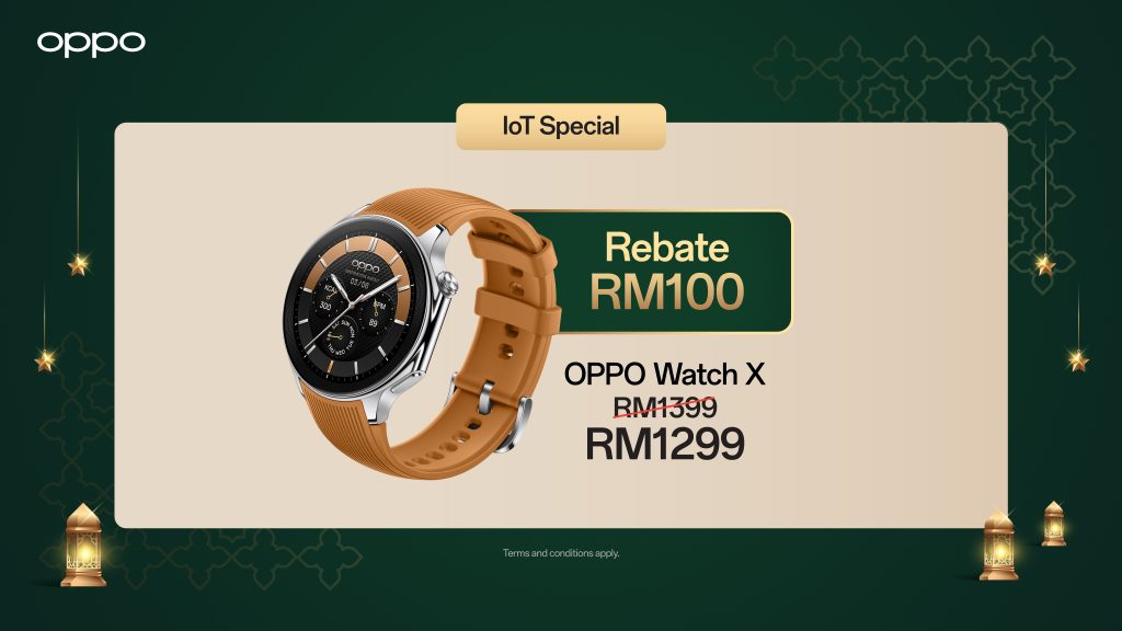 Enhance your style and fitness journey with the OPPO Watch X and enjoy a RM100 rebate on your purchase. With OPPO’s first dual-frequency GPS, 100+ sports modes, and long-lasting battery life, the OPPO Watch X is the ultimate accessory for those leading an active lifestyle.