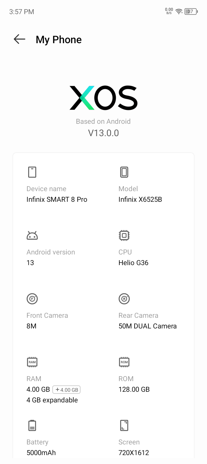 Admittedly speaking, the Infinix Smart 8 Pro is not meant to be a powerhouse, but still, it is equipped with the Octa Core Mediatek Helio G35 SOC that delivers good power efficiency while running multiple applications as smooth as it can with it’s 4GB of physical RAM, another 4GB of virtual RAM and 128GB of internal storage that is also still expandable up to 1TB of MicroSD card externally.