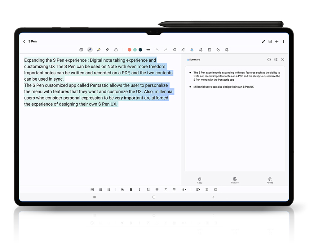 - Utilize the Galaxy Tab S9 series or Galaxy Z Fold5 for enhanced productivity and creativity. Features like Generative Edit and Note Assist are optimized for larger displays.