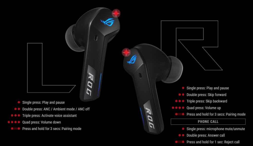 The Asus ROG Cetra True Wireless SpeedNova is weighted at 60 grams with the earbuds, while each side of the earbuds is weighted at 5 grams. It is also available in two colors, black or white. Whichever color you choose, the design and aesthetics alone will match most of your companion device, including those from ASUS and ASUS ROG.