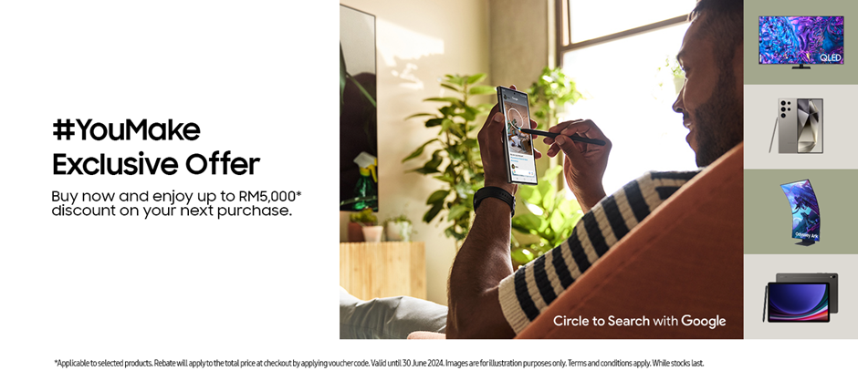 From now until 30 June 2024, take advantage of the Samsung Online #YouMake Next Purchase Voucher Program. Purchase selected Samsung mobile products and receive a voucher code worth up to RM5,000 to use on your next purchase of selected Consumer Electronics (CE) products. Whether you’re eyeing a stunning QLED 4K Smart TV for immersive movie nights, a sleek Smart Monitor for versatile productivity, or a powerful gaming monitor for thrilling gameplay, there’s something for everyone to elevate their entertainment experience.