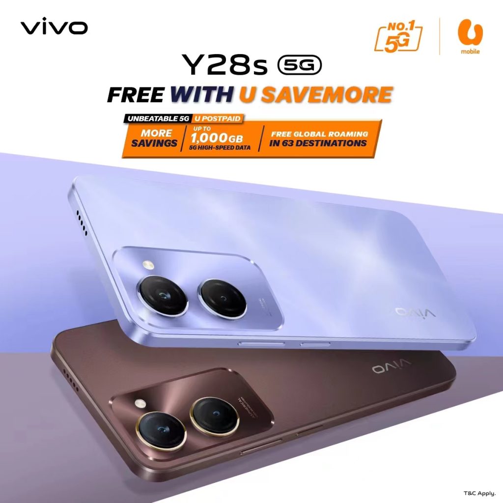 Similarly, vivo has partnered with U Mobile to provide the Y28s 5G for free with the U Savemore plan. At an unbeatable RM68 per month, the U Savemore plan includes up to 1000 GB of 5G high-speed data and free global roaming in 63 destinations, making it the perfect choice for those who demand high performance and extensive connectivity.