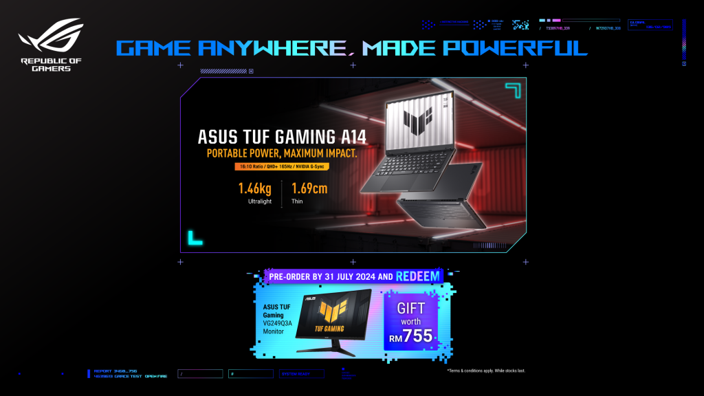 - ASUS TUF Gaming A14: Pre-order to get an ASUS TUF Gaming Monitor (VG249Q3A) worth RM755.