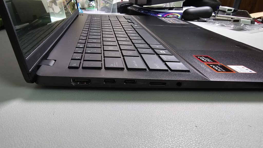 Based on my own experience, the 75Wh battery can provide around 8 hours of usage for tasks like work, streaming, music, and browsing. Recharging with the 90W USB C adaptor takes about 2 hours to reach full charge. When it comes to gaming on the laptop, it’s a selective yes for games like Genshin Impact, Zenless Zone, TMNT, and SOTTR. The Radeon 780M graphics card can handle eSports and some AAA titles, just ensure to adjust your settings for optimal performance. If you are keen on some light video editing, this laptop can render and do the job well.