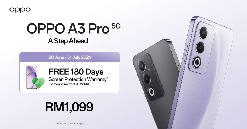 • Promotion: Free 180-day screen protection warranty (worth RM209) for purchases until 31 July 2024.