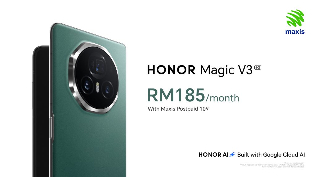 - Maxis: Get the HONOR Magic V3 with Zerolution on Maxis Postpaid 109 for RM185 a month. Visit the Maxis official website for more information.