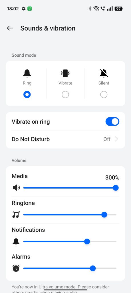 The audio performance on the Reno12 Pro is decent, though not exceptional. The phone features a dual firing speaker that produces clear sound, but it lacks some depth found in some stereo speaker setups. For casual listening, it works fine, but for a more loud audio experience, one can raised it up to 300% and it can get real loud that can cover a small room during our test. Furthermore this can still be tweaked with OReality Audio that came with 4 different pre-sets to choose from. There is no 3.5mm jack so for personal listening, your choice are left with USB C Audio and Bluetooth.