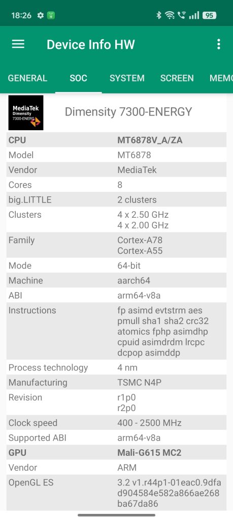 | Processor | Mediatek Dimensity 7300 Energy (4 nm) |