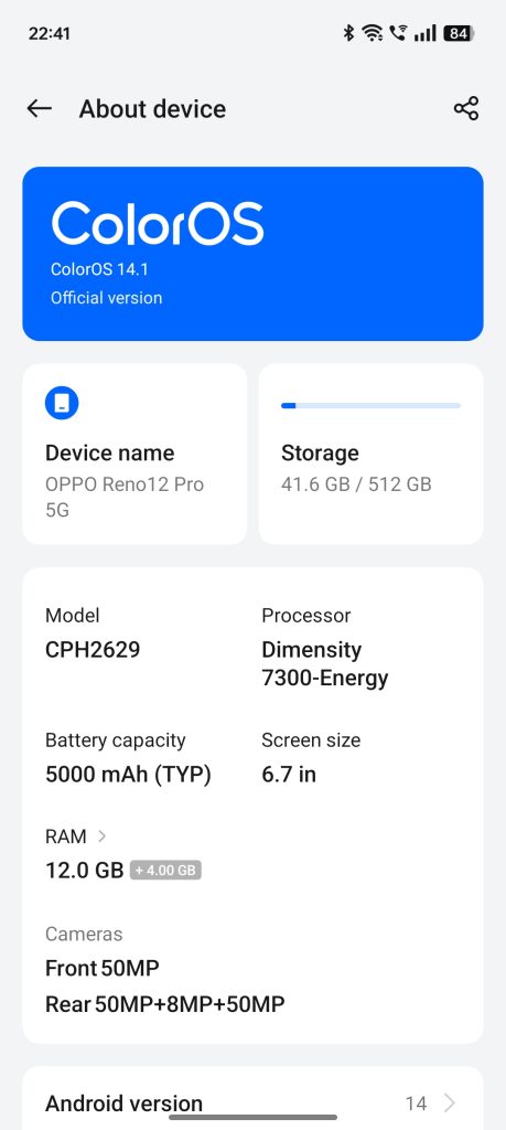 For gaming, the Mali-G615 MC2 GPU ensures a solid performance, allowing most titles to run smoothly even at medium to high settings. The device goes only slightly warm during prolonged sessions, thanks to its cooling system. This makes the Reno12 Pro one of the contending phones in the performance portion.