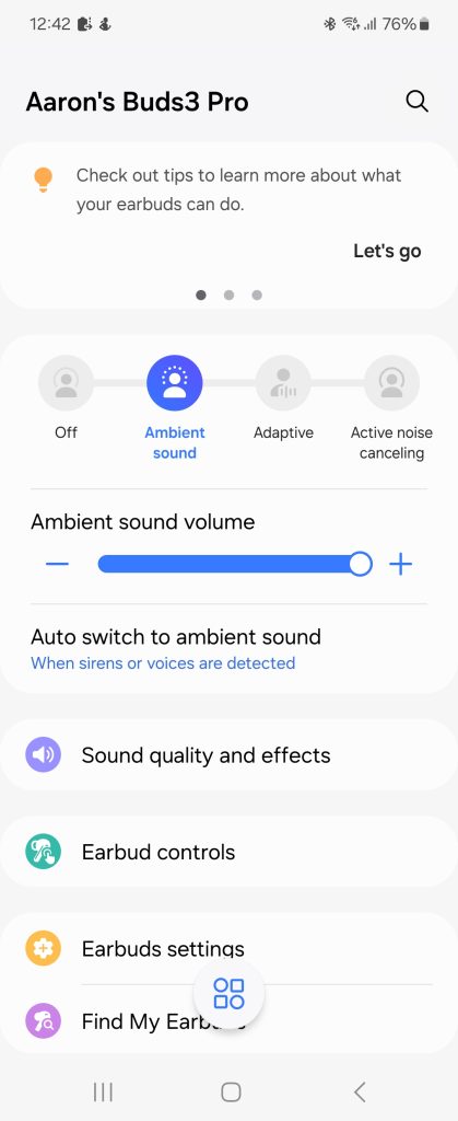 For Samsung Galaxy users, the integration with Samsung’s ecosystem is a key advantage. Features like Auto Switch allow the earbuds to automatically switch between your Samsung devices, depending on what you’re using at the moment. For example, if you’re watching a video on your tablet and receive a call on your phone, the Buds3 Pro will automatically switch the audio to your phone for the call.