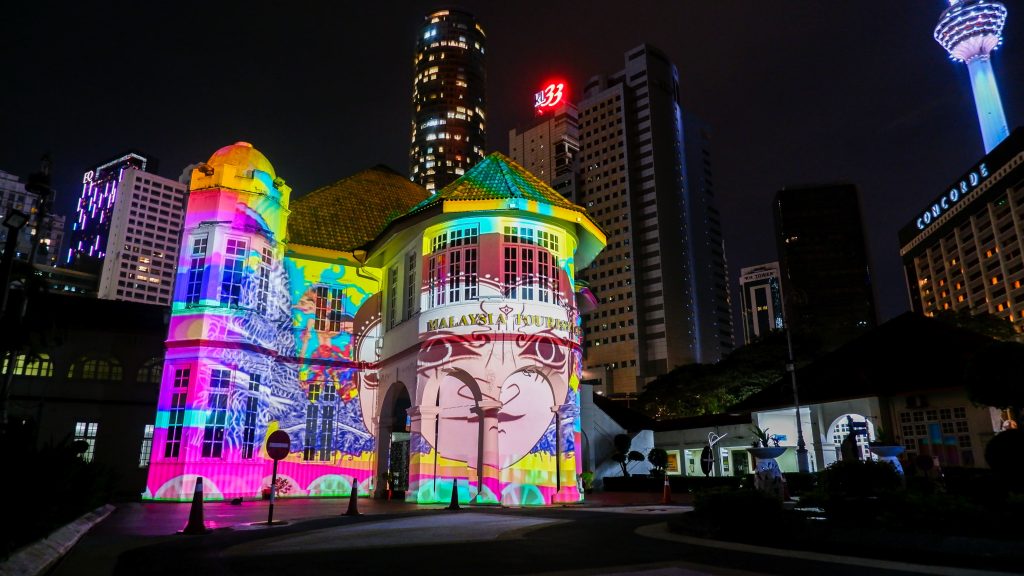 The iconic Malaysia Tourism Centre (MaTiC) will be transformed once again as TERANG 2024 lights up Kuala Lumpur from October 11th to 20th, 2024, between 8:00 pm and 11:00 pm. Returning for its second edition, the 9-day exhibition will feature 34 competitive projection mapping showcases, each 1 to 1.5 minutes long, exploring the theme “Cultural Futurism.”