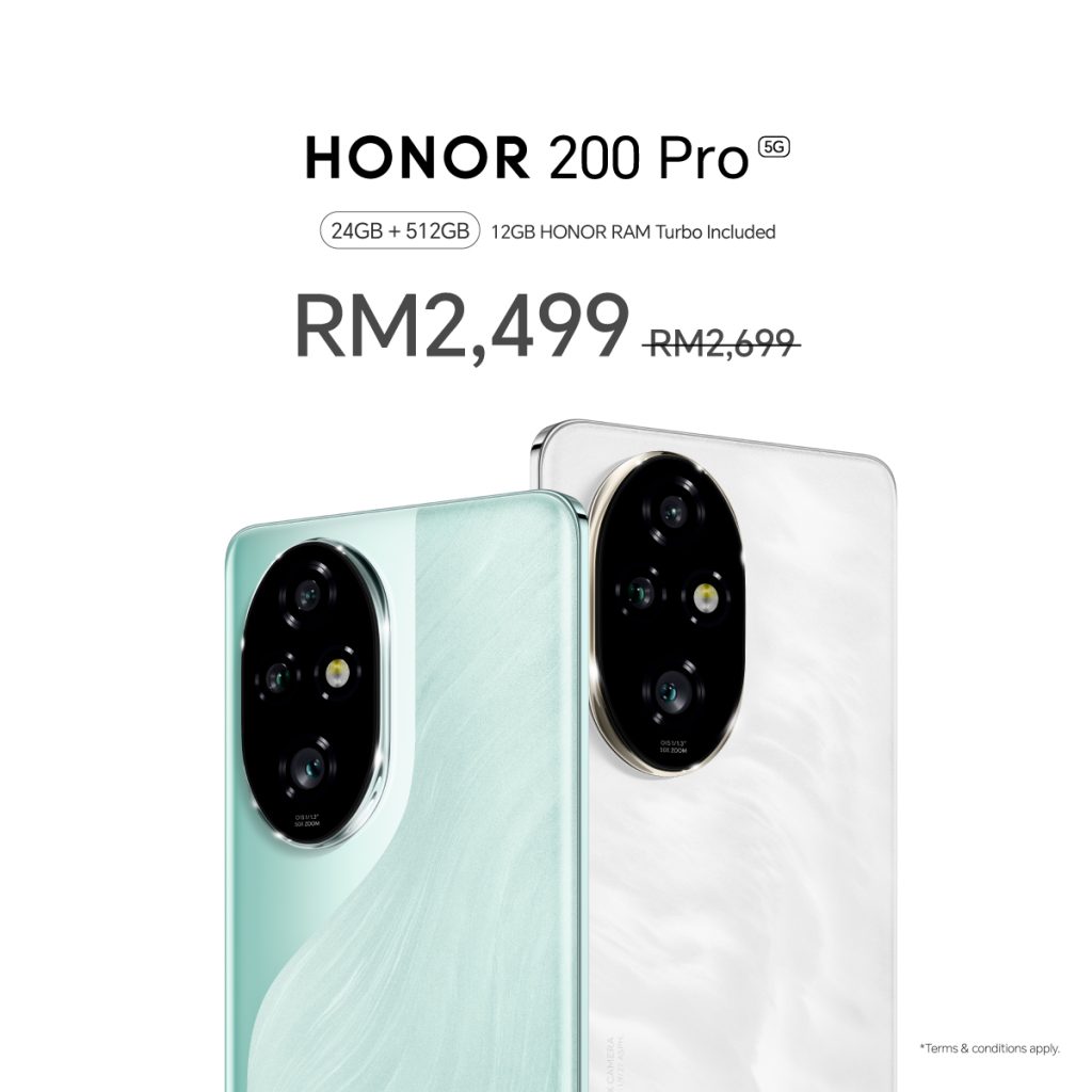 - HONOR 200 Pro (12GB RAM + 512GB storage) now retails for RM2,499 (previously RM2,699) and is available in Ocean Cyan and Moonlight White.