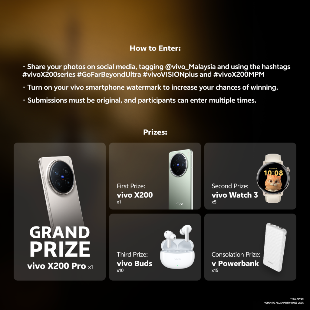 The Grand Prize winner will take home the cutting-edge vivo X200 Pro, while other participants stand a chance to win additional prizes from a total pool worth RM15,500.