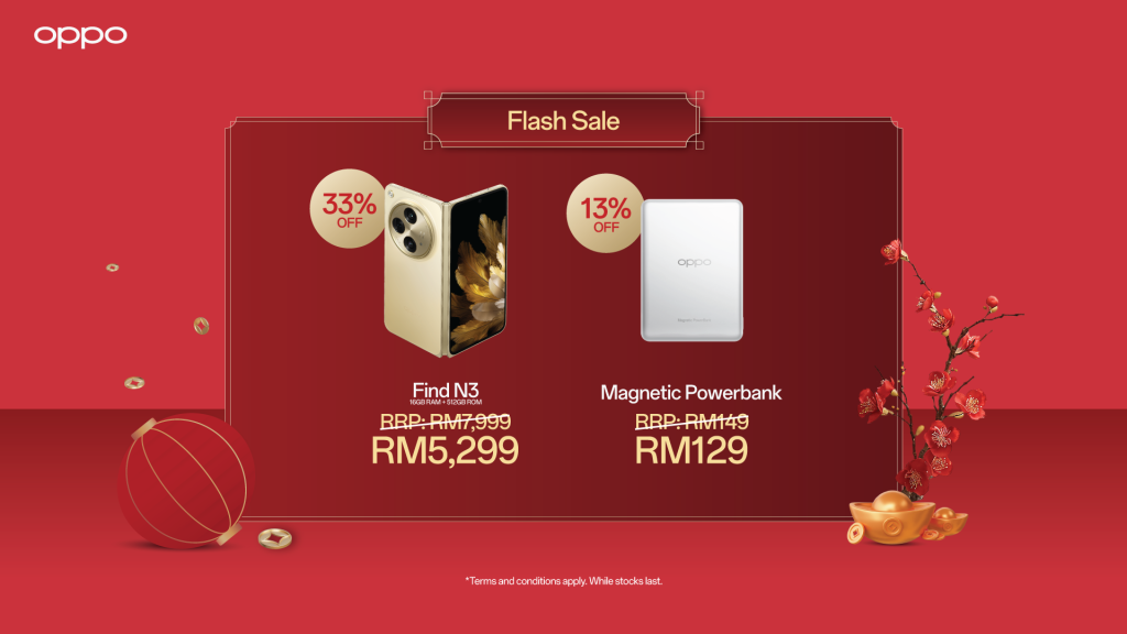 Get ready to grab the OPPO Find N3, a cutting-edge foldable phone, at a flash sale price of RM5,299 (original price: RM7,999). With its pro-grade camera system, stacked pixel technology, and Hasselblad-tuned modes, the Find N3 offers a top-tier mobile experience. Featuring seamless integration with ColorOS for productivity and a sleek, slimline design, it’s the ultimate upgrade for any smartphone enthusiast. Save 33% and enjoy a whole new level of innovation!