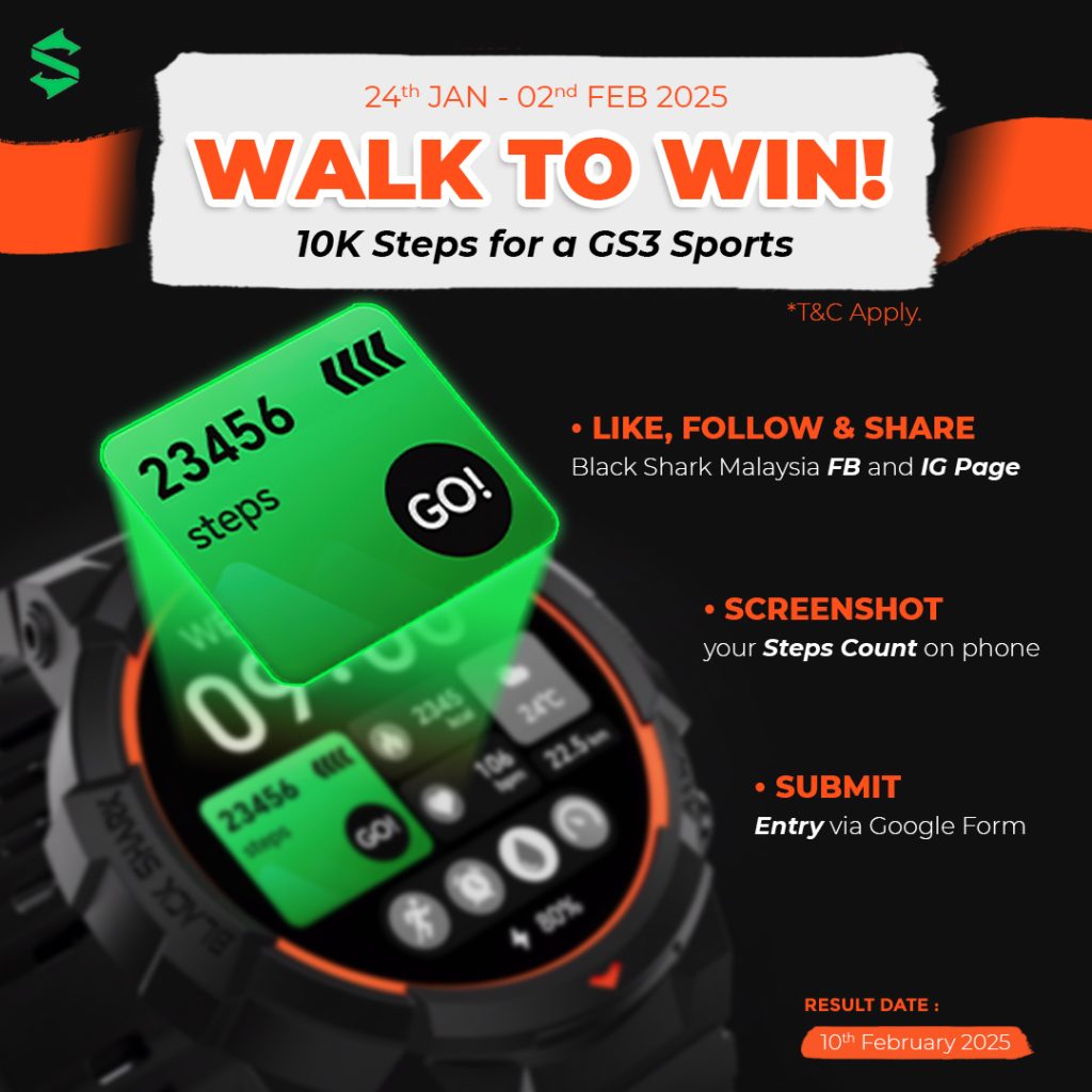 To celebrate the launch, Black Shark Malaysia is hosting an exciting fitness campaign encouraging participants to stay active and win a GS3 Sport Smartwatch.