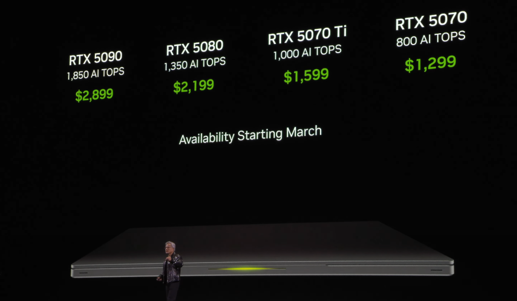 Laptops featuring RTX 5090, 5080, and 5070 Ti GPUs will launch in March, with RTX 5070 laptops following in April.