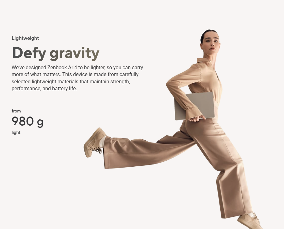 Designed for those constantly on the move, the Zenbook A14 boasts an all-Ceraluminum™ body, a material that is 30% lighter and three times stronger than anodized aluminum. Rigorously tested for scratch, shock, and wear resistance, this innovative chassis ensures longevity while maintaining an elegant, nature-inspired aesthetic.