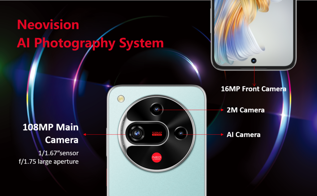 • 108MP AI Camera powered by the Neovision AI Photography System for stunning detail and optimized scene recognition.