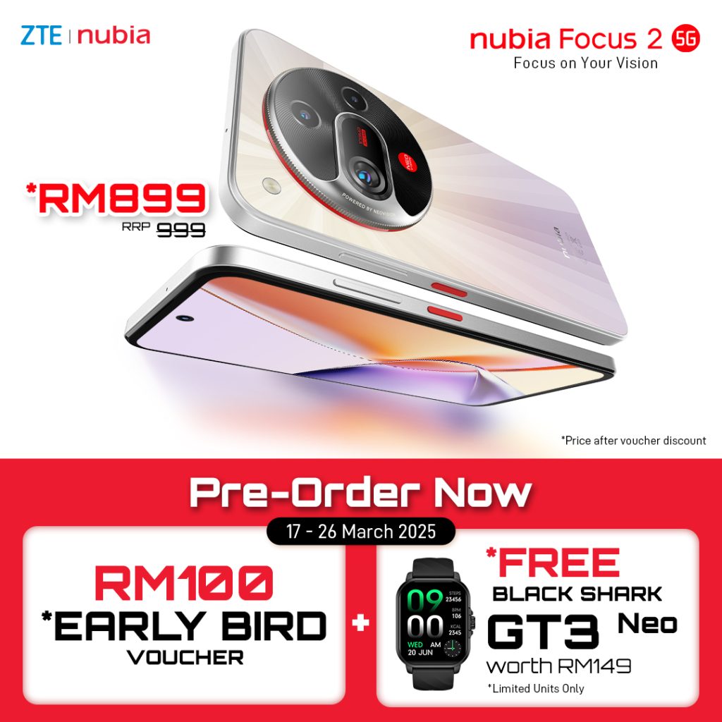 • Preorder Gifts: Black Shark GT 3 Neo, RM100 Early Bird Voucher, Focus 2 Gift Box (Limited units only)