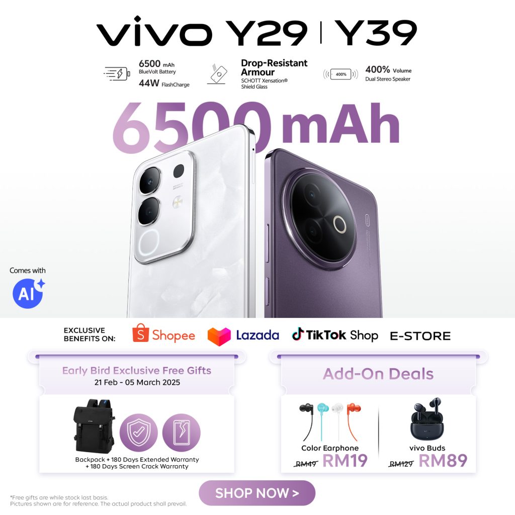 As part of this exciting Shopee 3.3 Sale, vivo Malaysia is launching the vivo Y29 and vivo Y39 with special first-sale promotions.
