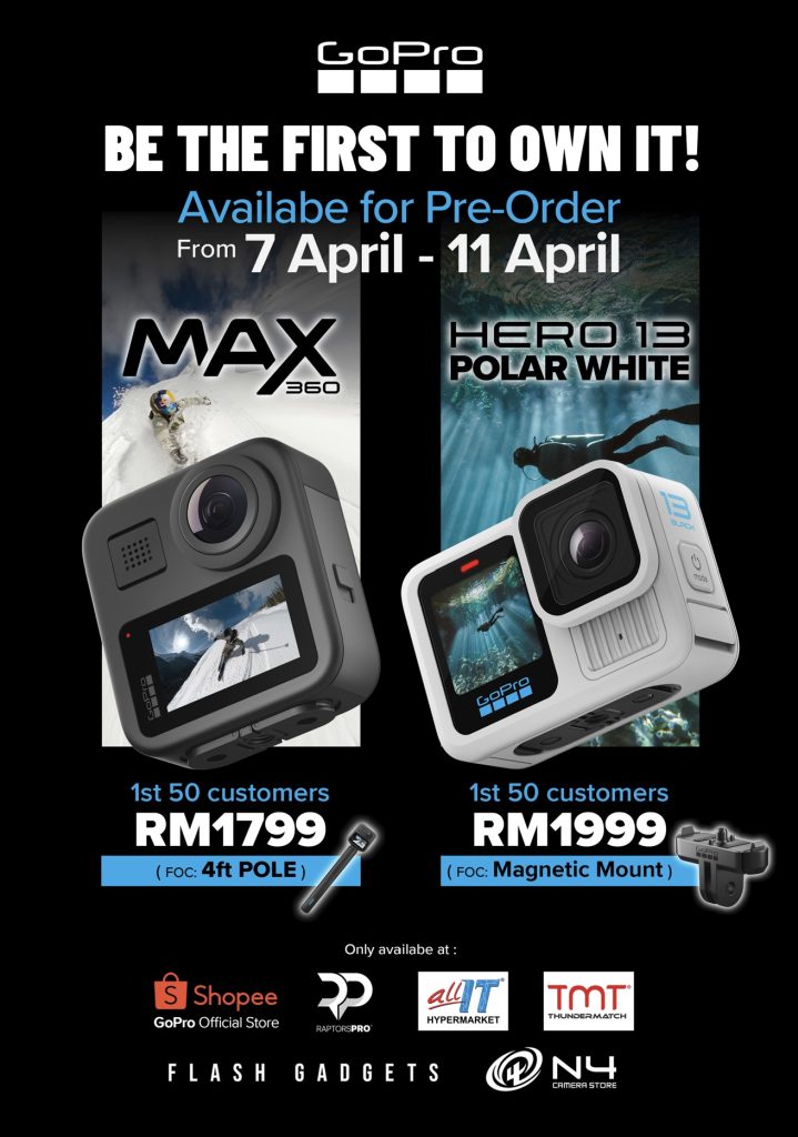 The GoPro MAX 360 is available for RM 1,799, with pre-orders starting today. The HERO 13 Polar White is priced at RM 1,999.