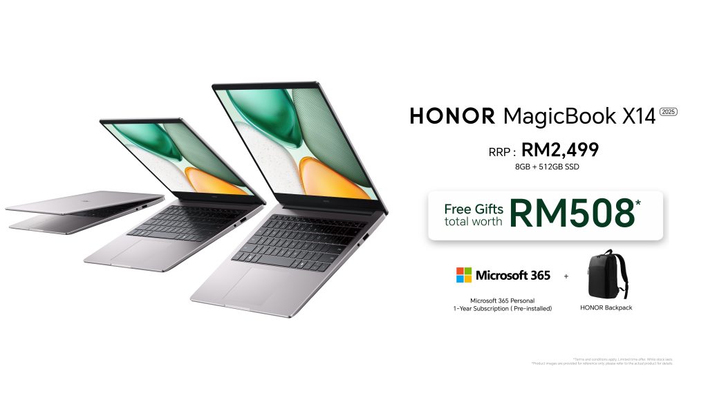 The new HONOR MagicBook X14 2025 comes equipped with Intel Core H Series processors, a 14-inch FullView display, and 65W fast charging, all packed into a sleek chassis. Priced at RM2,499, the laptop includes a free HONOR Backpack and a 1-year Microsoft 365 subscription.