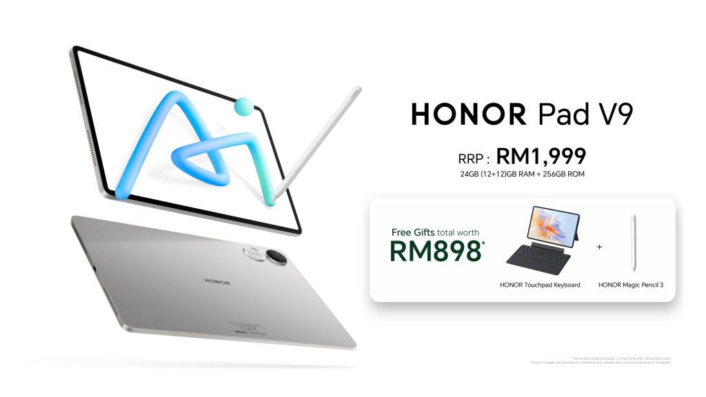 HONOR Pad V9, on the other hand, is made for productivity on-the-go. From real-time voice-to-text, AI meeting translation, to a 144Hz 2.8K display, this tablet is an office in your bag. With a 10,100mAh battery, detachable keyboard, and HONOR Magic Pencil 3 included (total value RM898), the Pad V9 will retail for RM1,999, starting 11 April.