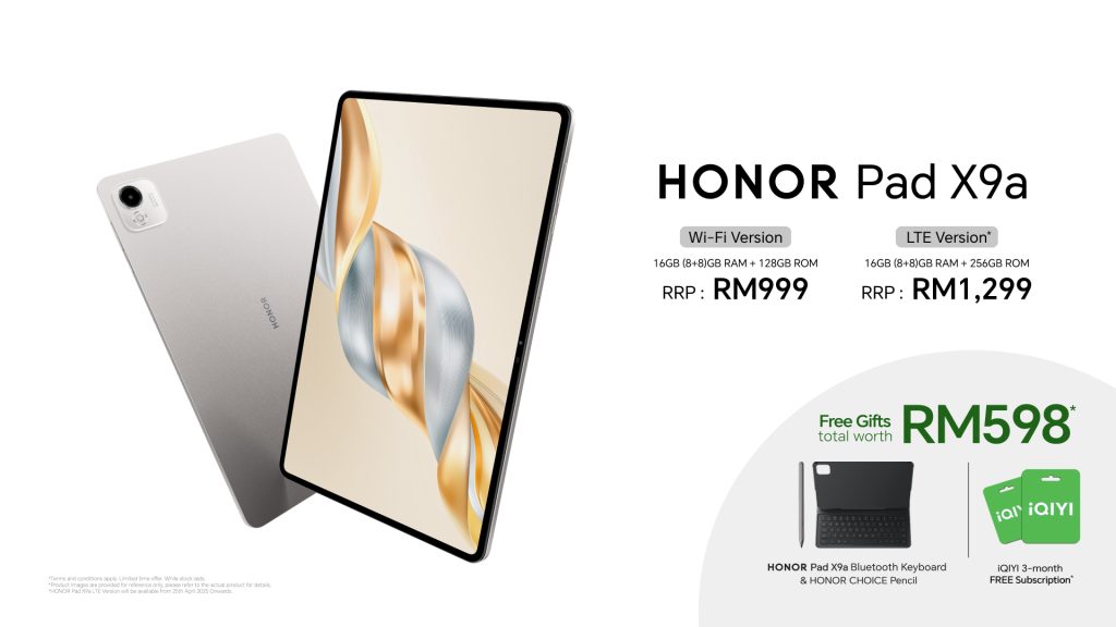HONOR Pad X9a (LTE) brings premium entertainment at an accessible price point. Featuring an 11.5-inch 2.5K display, TÜV Rheinland eye comfort certifications, and a massive 8,300mAh battery with 35W fast charging, it’s built for marathon streaming sessions. The tablet is bundled with a free Bluetooth keyboard and stylus, and is available in LTE (RM1,299) and WiFi (RM999) models.