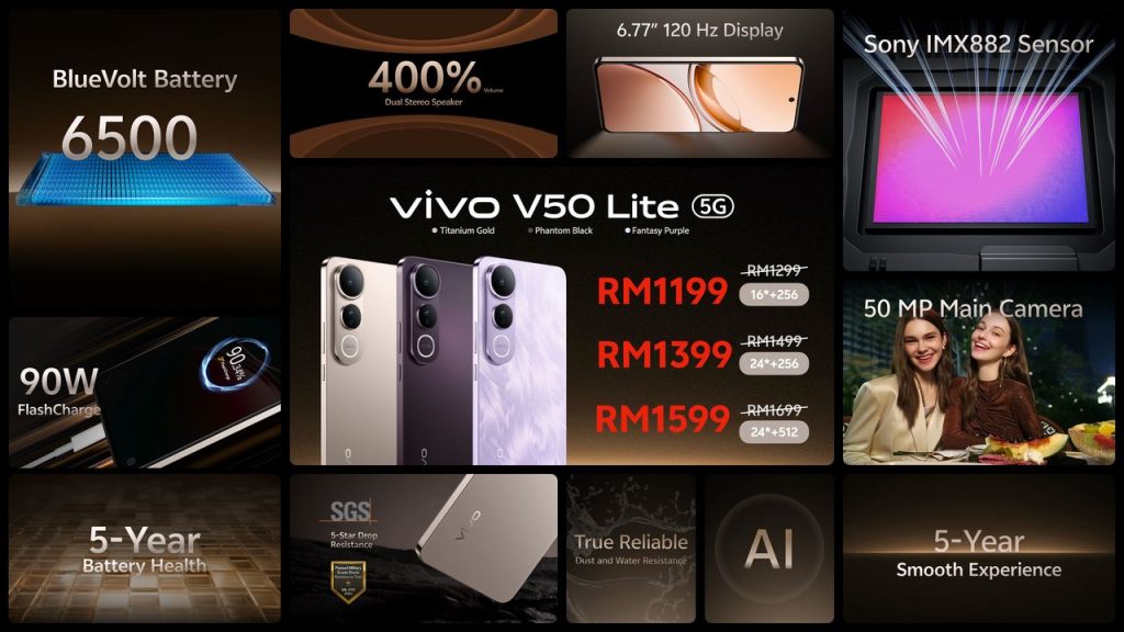 The vivo V50 Lite 5G is now available at all authorized vivo retailers and online platforms for RM1,299.