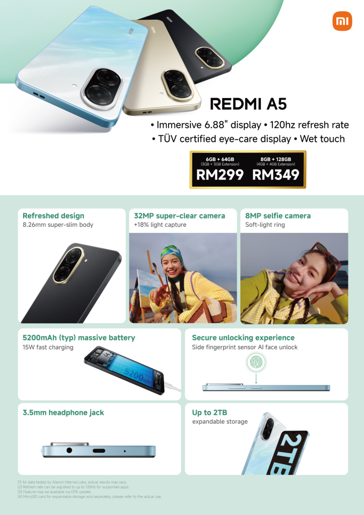 Xiaomi Malaysia has officially introduced the Redmi A5, a feature-rich entry-level smartphone designed to deliver big upgrades in performance, camera capabilities, and design — all at an accessible price. With refreshed aesthetics, a sharper display, and improved imaging, the Redmi A5 raises the bar for everyday smartphones under RM350.