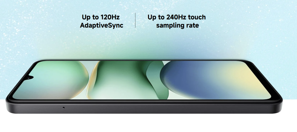 Equipped with a 6.88-inch display supporting up to 120Hz refresh rate, the Redmi A5 offers smooth scrolling and an immersive visual experience. The screen is TÜV Rheinland-certified for eye protection and features DC dimming for reduced flicker, making it easy on the eyes during long viewing sessions. It also includes wet touch support, maintaining responsiveness even when your hands are damp.