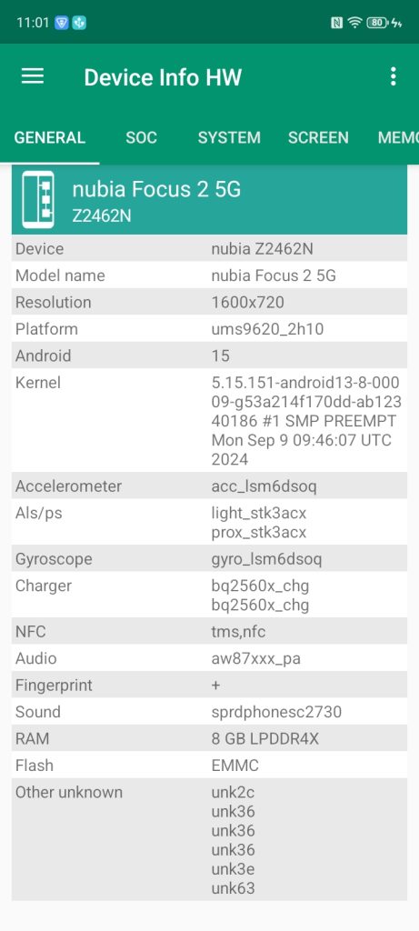 In addition to 8GB of RAM (with 10GB of Virtual RAM) and 256B of internal storage, the ZTE Nubia Focus 2 is powered by the Unisoc Tiger T760 5G chipset and other components. For daily use, casual gaming, and light multitasking, performance is surprisingly good.