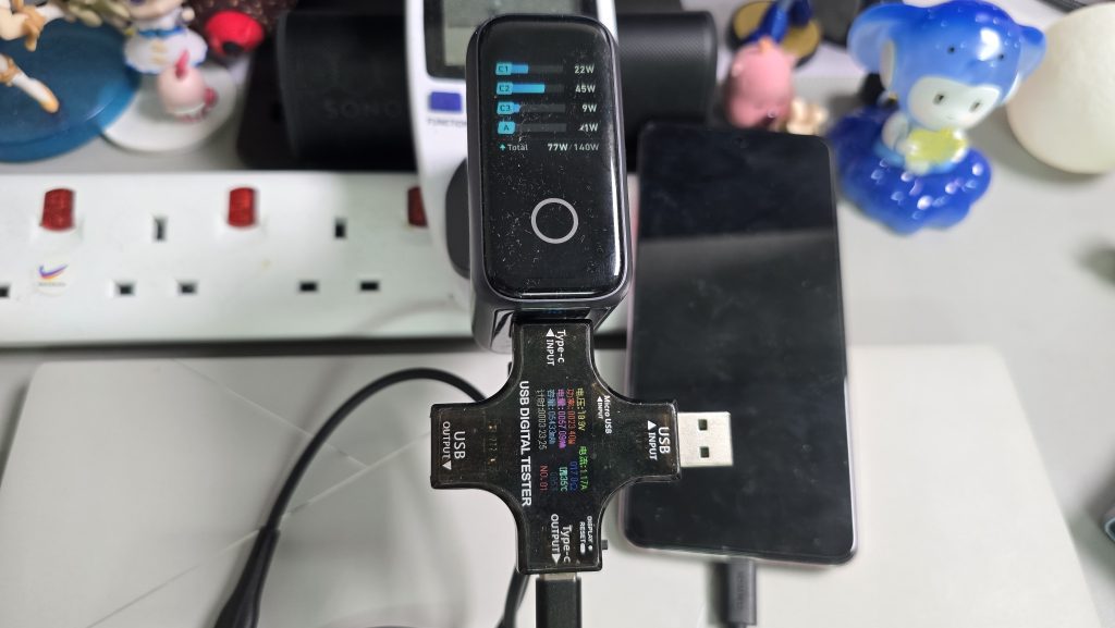 The Anker 140W charger works incredibly well in real-world scenarios. A phone, powerbank, and Smart Ring can all be charged at the same time as an ASUS Zenbook S16 AMD laptop. To ensure safe operation across all ports, the charger actively monitors voltage and temperature thanks to its ActiveShield 2.0 safety technology.