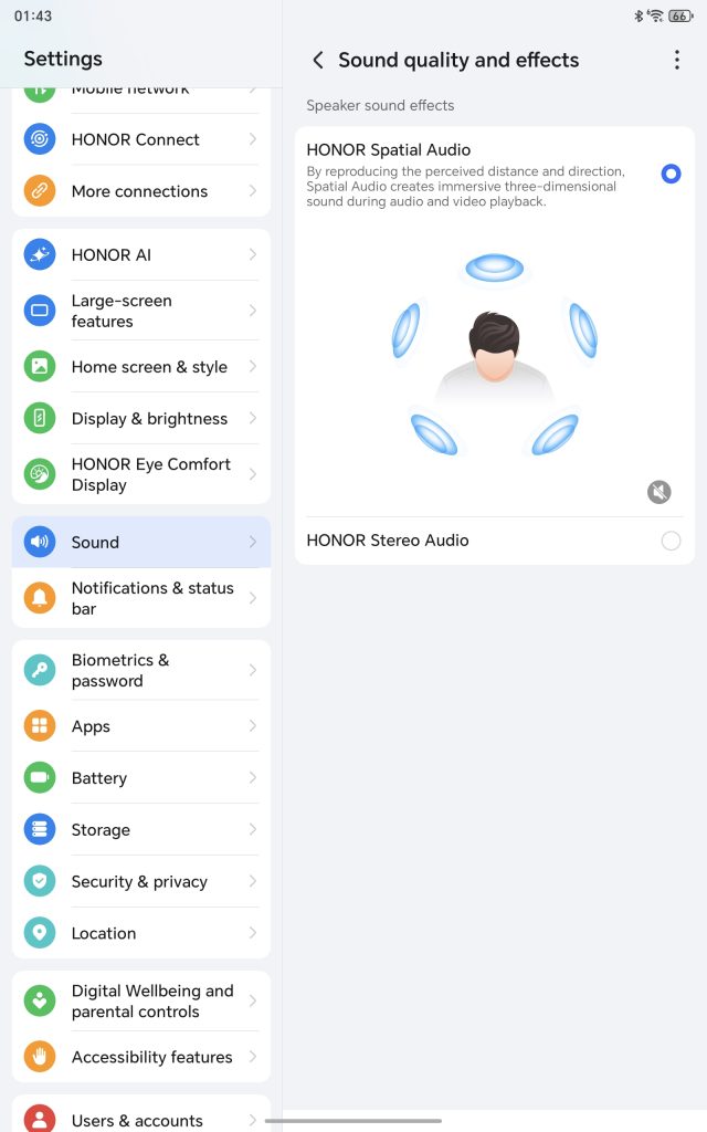 Audio wise, the HONOR Pad 10 features six speaker setup (3 on each side) that can produce very loud audio delivery with close to no crackle or distortion, apart from that, it allows tuning via HONOR Sound and HONOR Spatial Audio, or just select AI mode and the tablet will handle the rest according to the sound or music genre that is playing on the tablet.