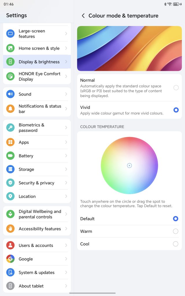 The HONOR Pad 10’s 12.1-inch 2.5K display, with a resolution of 2560×1600 and a fluid dynamic refresh rate of 120Hz, is the focal point of the experience. Because of its 88% screen-to-body ratio, which minimizes bezel distraction, it’s perfect for productivity tasks as well as media consumption. With over a billion colors rendered and compatibility for the DCI-P3 wide color gamut, the panel produces accurate and vibrant images.