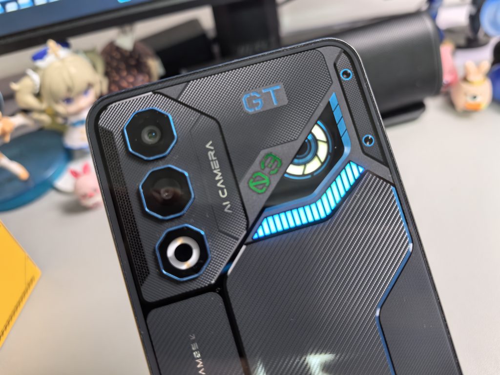 In keeping with its gaming heritage, the Neo 3 GT has a futuristic design that includes RGB lighting and pressure-sensitive shoulder triggers on the sides. Because it weighs 209g and is 8.4mm thick, the device is somewhat ergonomic despite its striking appearance, making it comfortable to hold. The plastic body of this device, which comes in Electro Yellow and Interstellar Grey, makes it feel high-end in the palm.