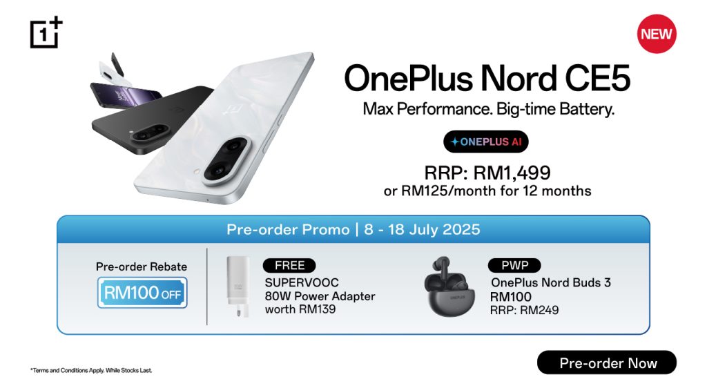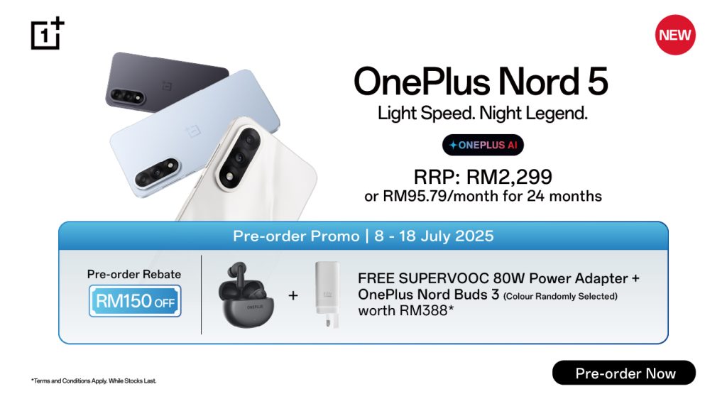 - Free gifts: 80W OnePlus Adapter (worth RM139) and Nord Buds 3 (worth RM249)