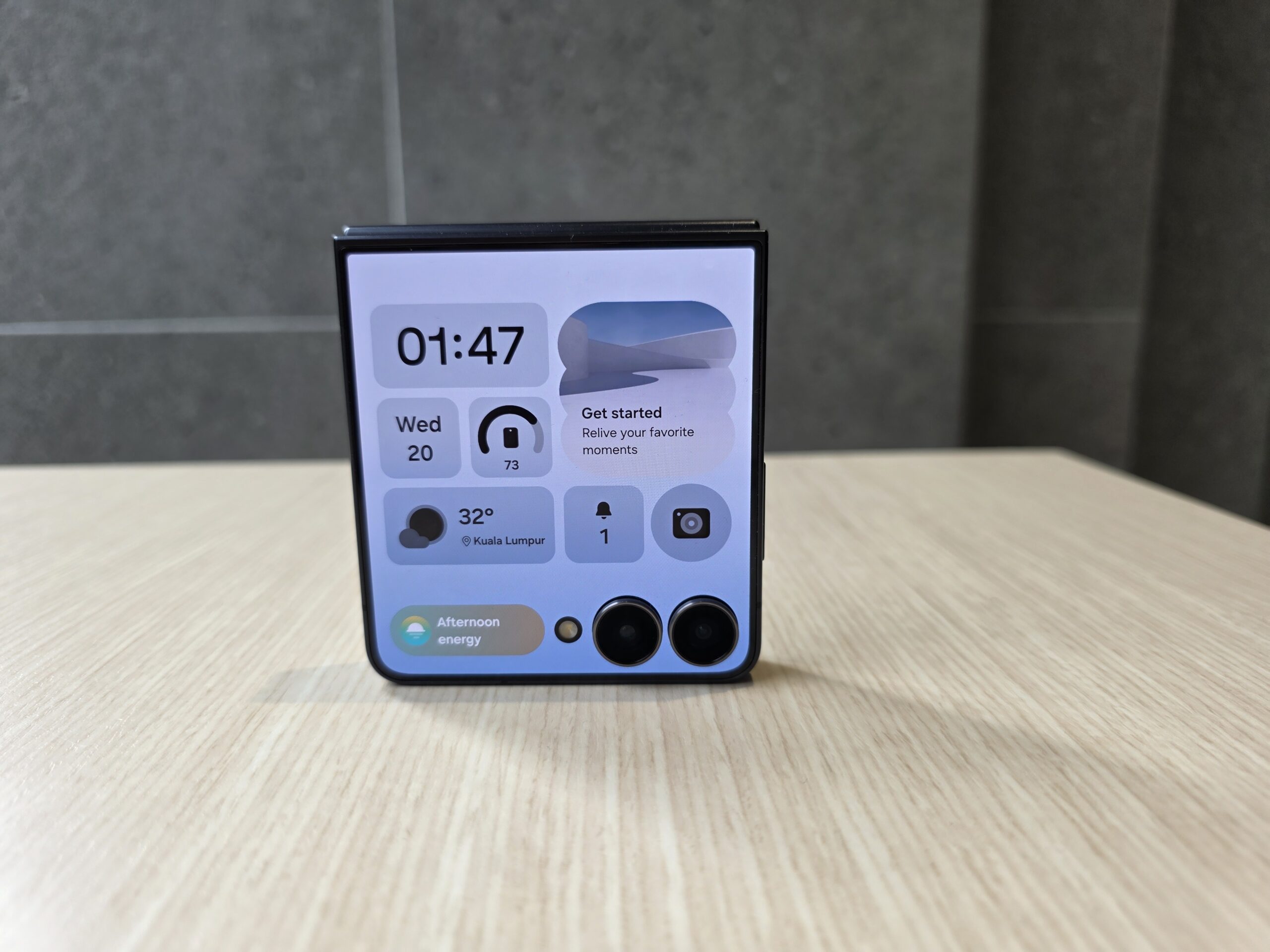 The first thing that catches your eye is the new 4.1-inch edge-to-edge FlexWindow. It’s the largest ever on a Flip, delivering smoother interactions at 120Hz refresh rate and up to 2,600 nits brightness. That means you can comfortably scroll through socials, reply to messages, and even frame selfies—all without unfolding the device.